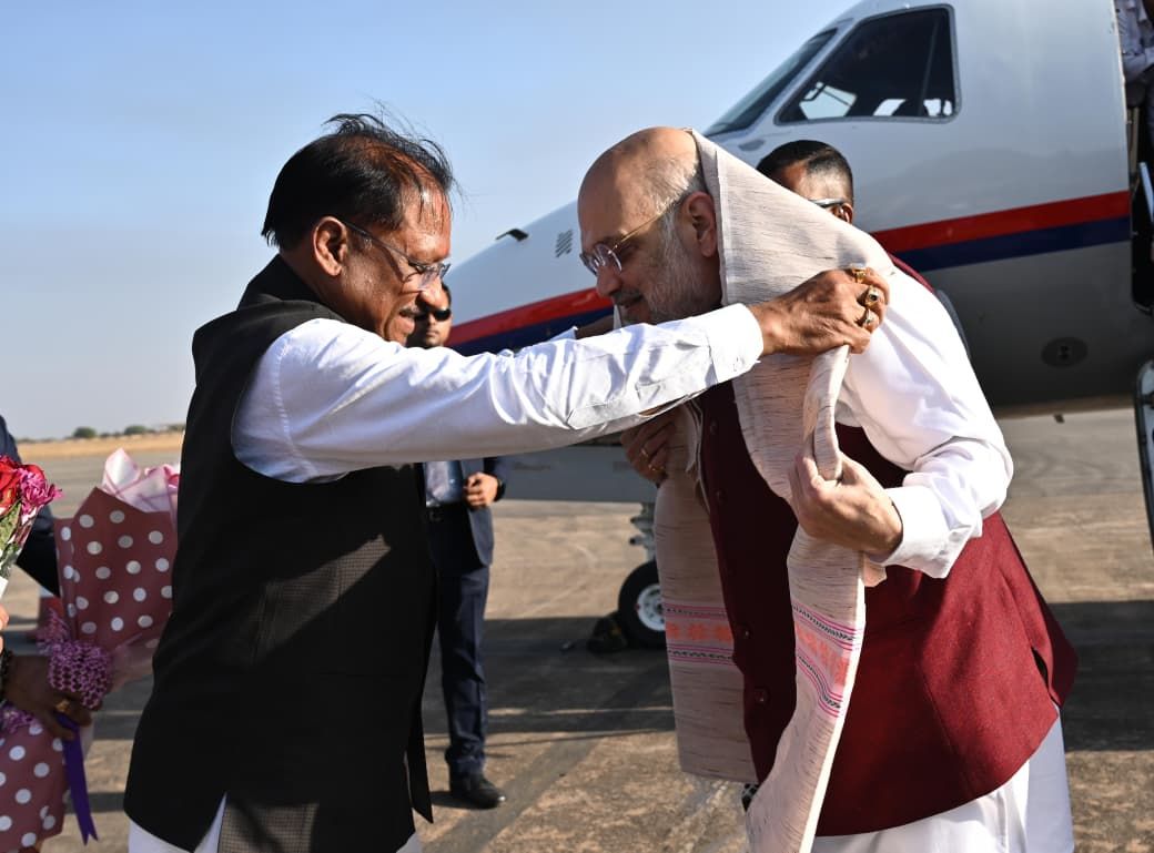 रायपुर : केंद्रीय गृह एवं सहकारिता मंत्री अमित शाह शनिवार शाम को छत्तीसगढ़ की राजधानी रायपुर पहुँच चुके हैं। तीन दिवसीय प्रवास पर आए शाह का रायपुर एयरपोर्ट पर मुख्यमंत्री विष्णुदेव साय, उप मुख्यमंत्रियों और राज्य कैबिनेट के मंत्रियों ने गर्मजोशी से स्वागत किया। अमित शाह का यह दौरा राज्य में नक्सलवाद के खात्मे की दिशा में 'अंतिम प्रहार' के रूप में देखा जा रहा है।