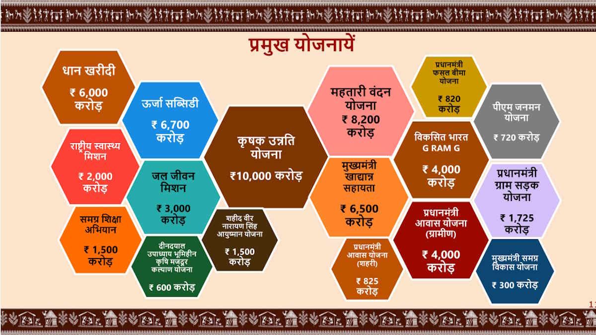 - महतारी वंदन योजना: महिलाओं के सशक्तिकरण के लिए ₹8,200 करोड़ आवंटित किए गए हैं।