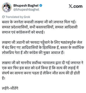 लखमा 15 जनवरी 2025 से रायपुर सेंट्रल जेल में बंद थे। उनकी इस जमानत को कांग्रेस खेमे में एक बड़ी नैतिक जीत के रूप में देखा जा रहा है।
